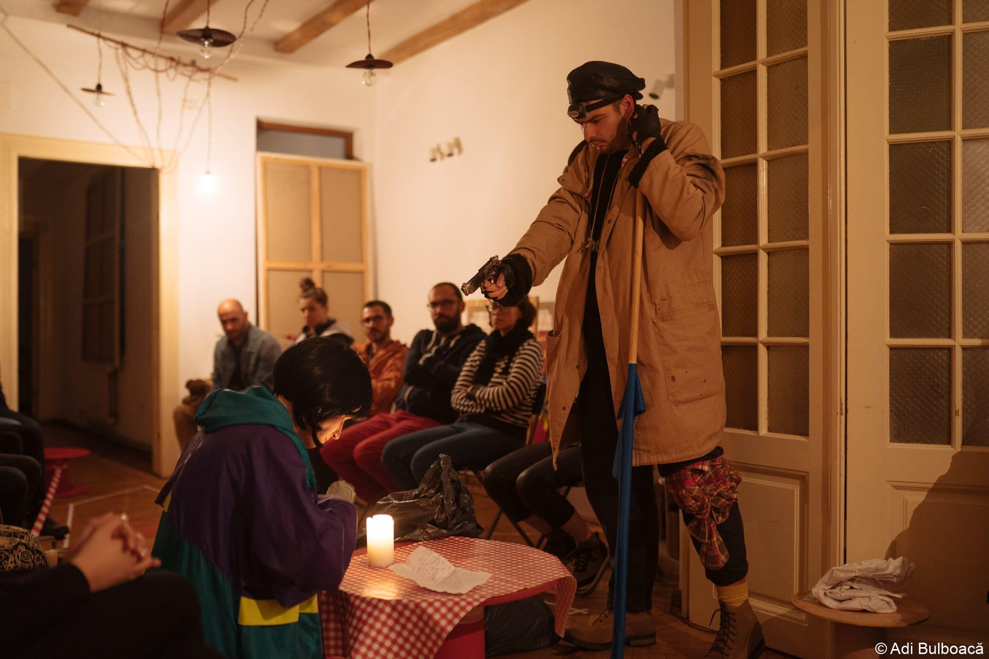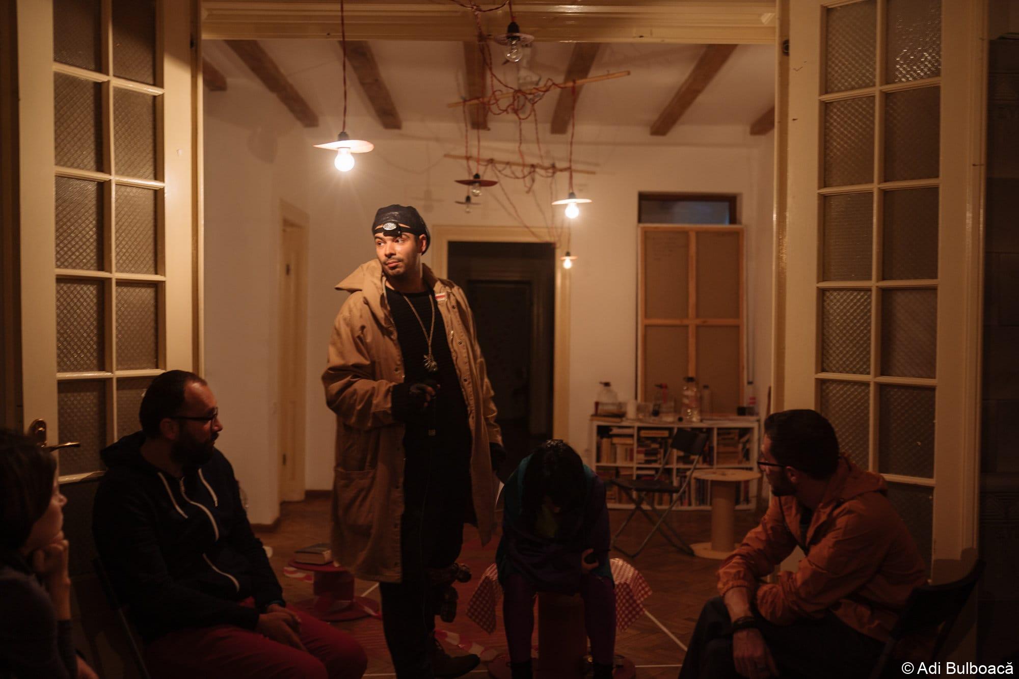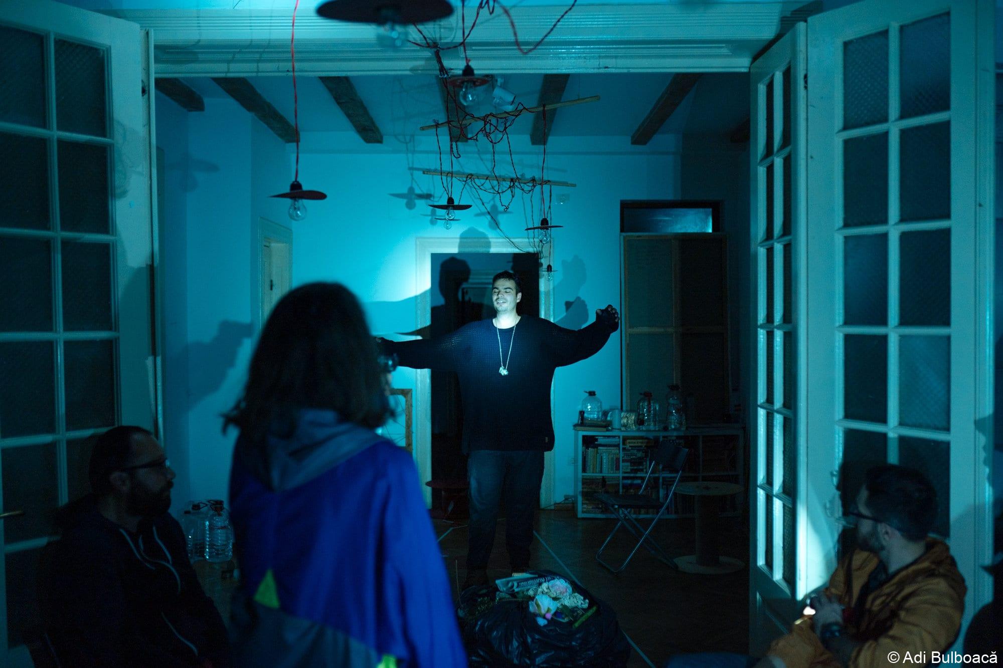 AN IMMERSIVE THEATRE PERFORMANCE – ITINERANT. “SALVATIONKIT” IS THE FIRST PART OF A TRILOGY THAT TAKES PLACE IN THE VICINITY OF THIS HYPOTHETICAL MAJOR EARTHQUAKE IN BUCHAREST AND ASKS THE QUESTION: “WHO AND WHAT WILL SAVE US?”. “SALVATIONKIT” TAKES PLACE IN THE BUCHAREST OF A NEAR FUTURE WHEN THE AUDIENCE ATTENDING A THEATRE PERFORMANCE SURVIVES A DEVASTATING EARTHQUAKE WHOSE CATASTROPHIC CONSEQUENCES BECOME INCREASINGLY CLEAR.